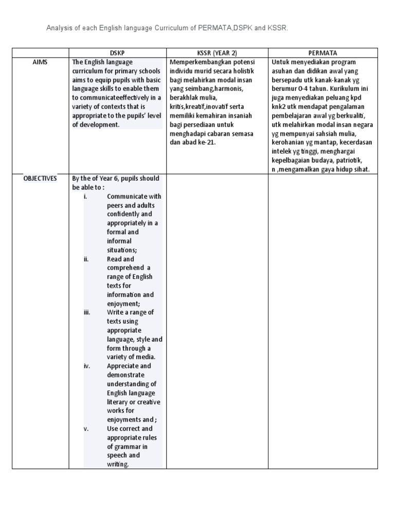 Bermula tahun 2017 Dokumen Standard Kurikulum dan Pentaksiran bagi tahun 1 akan menggunakan sukatan KSSR semakan menggantikan kurikulum KSSR yang terdahulu diikuti dengan tahun 2 pada tahun 2018 tahun 3 pada tahun 2019. Appreciate and demonstrate understanding of English language literary or creative works for enjoyment.